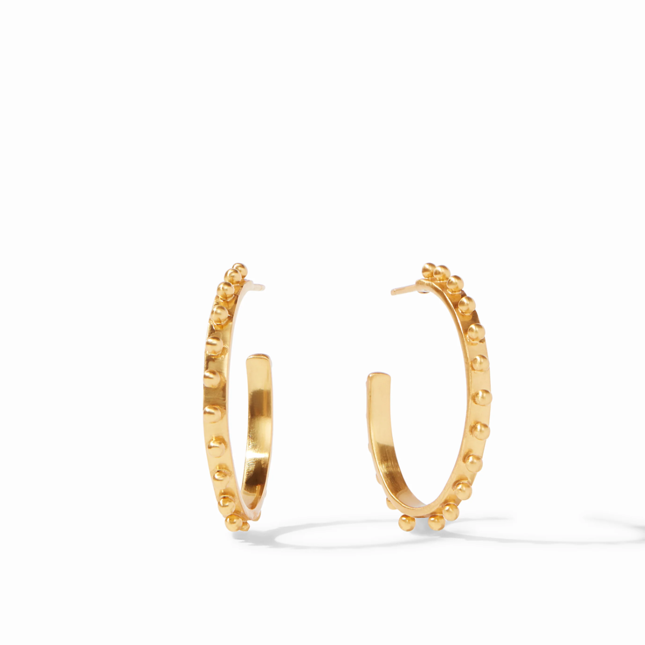 Studded gold beads decorate this hoop in all gold or mixed metal.