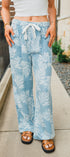 These pull on wide leg pants feature an elastic drawstring waist, front pouch pockets and have a soft fluid drape.