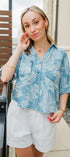 This relaxed fit split neck button front shirt features front patch pockets and a smooth airy feel.