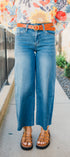 The Maren Jeans feature a high-rise waist, clean-cut raw hem, and cropped length for a modern silhouette. Crafted from comfort stretch denim, these slim wide jeans combine style and ease for versatile wear.