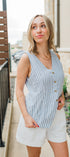 Quincy Linen Vest | Blue Stripe