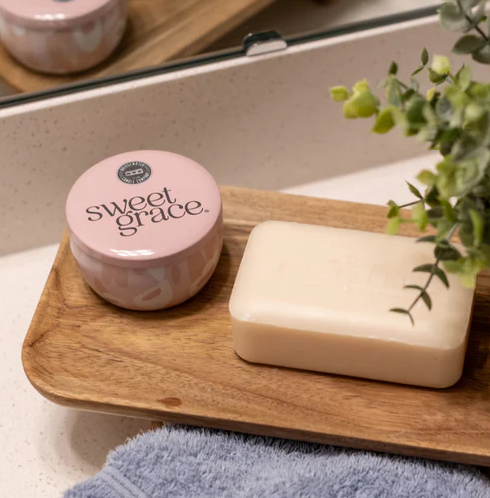 Take Sweet Grace everywhere you go with our Sweet Grace Collection #059 candle, featuring a tin, travel-sized container with a playful pattern and a soft palette of blush, grey, and white. Every Bridgewater candle is meticulously crafted with a proprietary soy-blend wax formulation that ensures a clean, even burn and an exceptional scent.