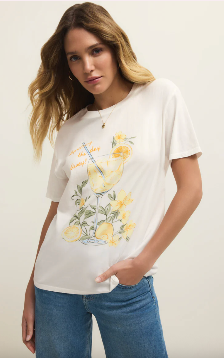 Made from soft cotton jersey, this relaxed tee features a playful spritz graphic that captures the essence of carefree weekends. With a lightweight feel and easy fit, it’s a must-have for sunny days.