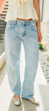 A classic barrel jean features a relaxed, slightly curved silhouette that tapers towards the ankles, resembling the shape of a barrel. Offering a flattering fit, and provide roomier thighs and hips for a comfortable yet stylish look. These jeans often have a cropped or ankle-length cut, making them versatile for various footwear styles, from sneakers to boots.
