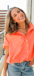 Brighten up your wardrobe with this stylish coral button-down blouse. Featuring a relaxed, oversized fit, this top offers both comfort and flair, perfect for warm weather. The soft, lightweight fabric drapes beautifully, while the classic button-down design adds a touch of sophistication. Whether you pair it with jeans or shorts, this versatile top will quickly become a favorite for casual outings or relaxed office days.