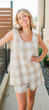 Gingham sleeveless tank and shorts set.